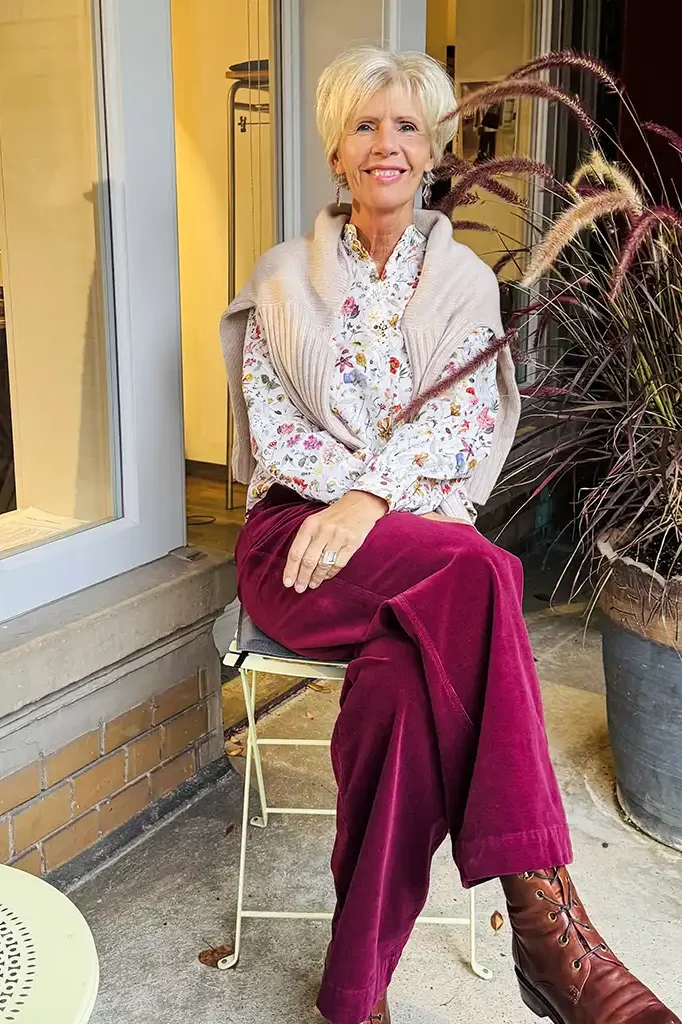 So schön kann der Herbst sein! Die verspielte geblümte Baumwollbluse von @gluecklich.brand kombinieren wir mit einer Cordhose von @elemente_clemente, als kuscheliges Accessoire über den Schulter liegt Kaschmir von @peteromahler.